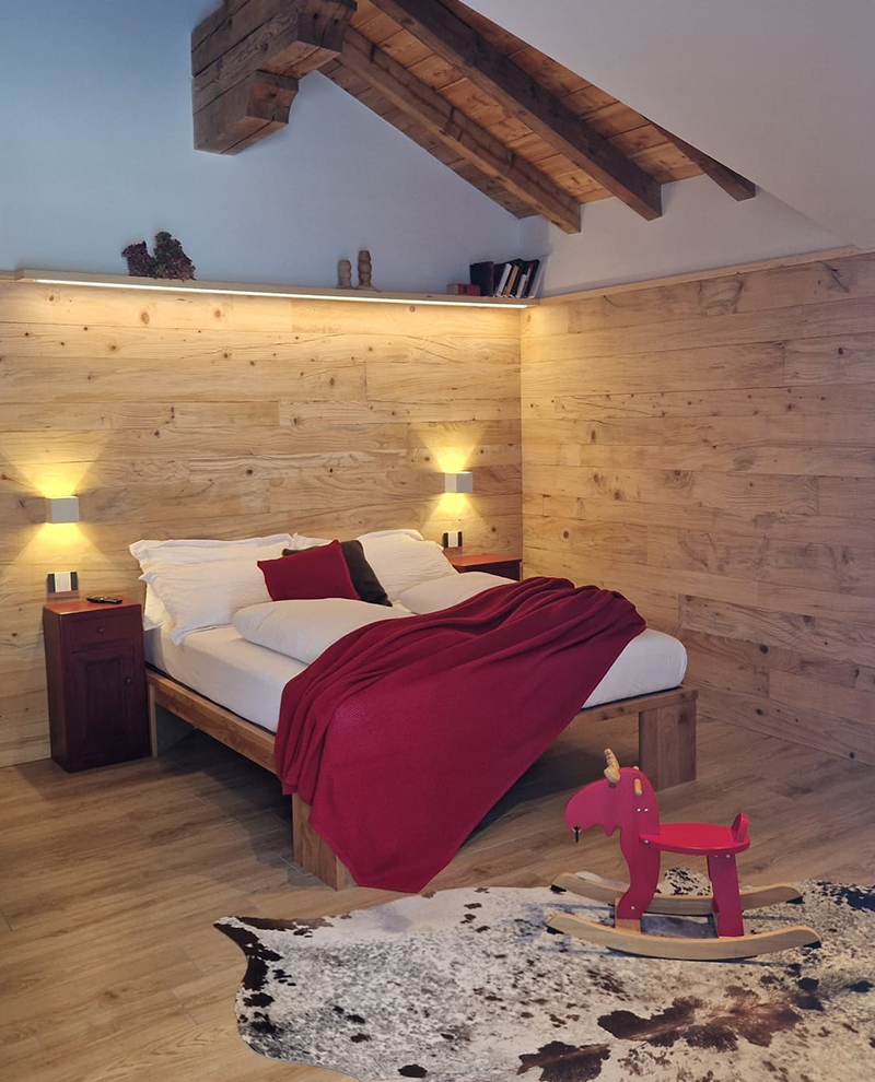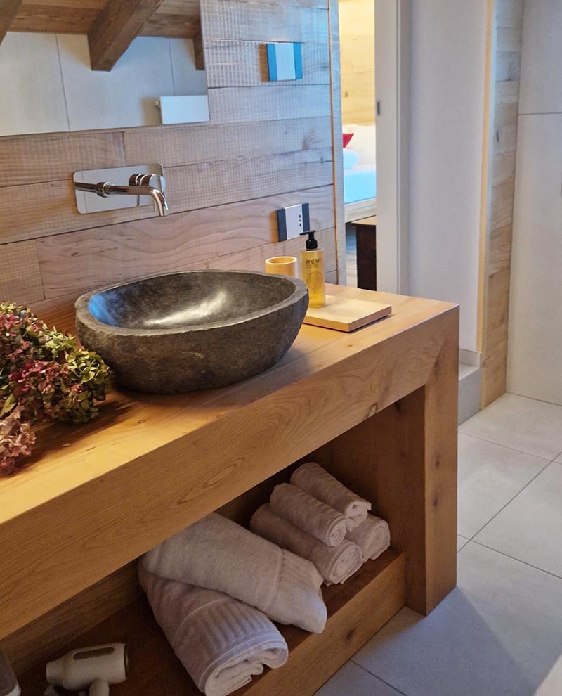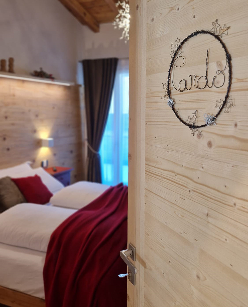 Le nostre camere profumano di legno, sono molto spaziose, hanno balcone o giardino con splendidi panorami.